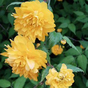 小さな庭の「八重咲きヤマブキ」の開花です。