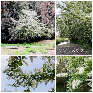 ウワミズザクラ 花明山植物園の「ウワミズザクラ」の開花です。 ブラシの花の様な花で、ソメイヨシノの花が散る頃に咲きます。