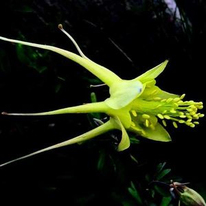 コメットさん 小さな庭にオダマキの花が咲きました。 黄色で、尻尾が長い姿から、勝手に「コメット」さん(尾を長く引く天空の箒星)と呼んでいます。