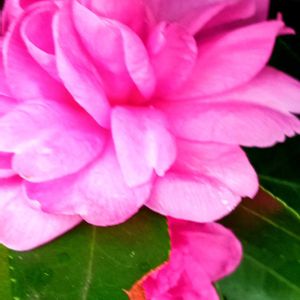 今朝の山茶花 今朝の、小さな庭の山茶花の花です。 八重咲きの山茶花より、おくれること2週間、咲き始めました。