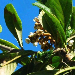 枇杷の花 小さな庭の枇杷の木に、花が咲きました。 冬に咲いて、実に成るのは、翌年の夏です。 随分と長い、結果への道程です。