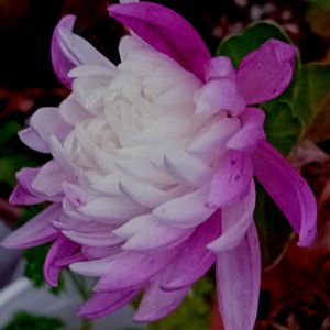 大輪菊 挿し木で増やした大輪菊に花が咲きました。 白花の菊でしたが、開花した菊は、白に薄紫のボカシが入っています。 この、菊の花だけなのか、今年の秋の開花が、楽しみです。