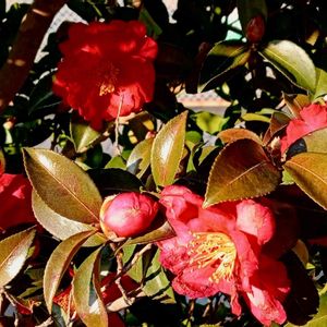 「 焚き火」 サザンカ サザンカ 咲いた道 焚き火だ 焚き火だ 落ち葉だき、、、 今朝、北海道で-11.4℃を記録する、寒い朝でした。 小さな庭の、八重咲きサザンカの開花🌸です。
