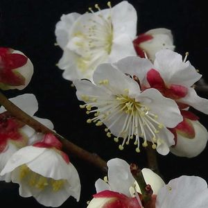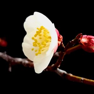 梅の一番花が開花 わが家の小さな庭で、梅の一番花が、開花しました。