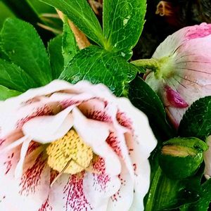 クリスマスローズ 小さな庭のクリスマスローズが咲きだしました。 淡いピンク系の八重咲きです。