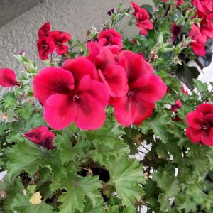 マンションのベランダ 朝一番、次々に開花してますよ🥰 ローズゼラニウムより一足遅れて 開花し始めました 2年目の鉢植、今年は挿し芽で リニューアルします😅❤️🔥 💕ベラルゴニウム💖