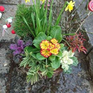 正月用の寄せ植え🌼松竹梅を入れたくて、まとまらなくて、会社の先輩に相談して、なんかいもやりなおして、作りました😅