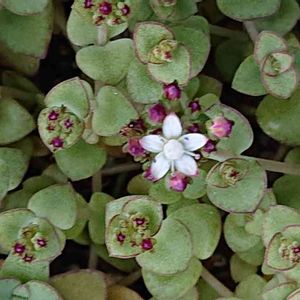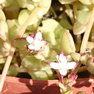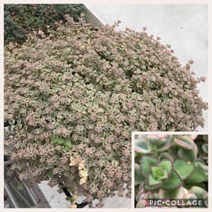 ★リトルフロッジー リトルミッシー(2017.12.8投稿)同様、 セダムで流通したりしてますがクラッスラです🎶 ペルシダ亜種マルギナリスの矮性種 「ミニマ」の黄中斑型(葉の中央に黄色い斑が入る)で、 リトルミッシーとは斑の色が違うせいか、 ステッチの色も微妙に異なります✨ リトルミッシー → 白外斑(白覆輪)型 リトルフロッジー → 黄中斑型 黄斑だからなのか、蒸し暑い日本の夏も ミッシーよりやや耐暑性が高い気がします😁 -∴-∵-∴-∵-∴-∵-∴-∵-∴-∵-∴- Crassula pellucida ssp.marginalis 'Minima' Variegata クラッスラ ペルシダ 亜種マルギナリス 'ミニマ' 斑入り 流通名 リトルフロッジー 和名 不明(情報募集中♪) シノニム Sedum 'Little Floggy' Crassula 'Little Floggy' Crassula pellucida ssp.marginalis 'Dwarf Form' Variegata