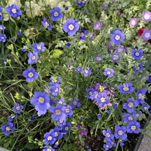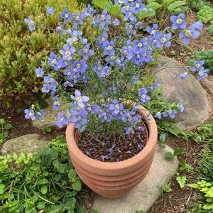 今日のお花ワスレナグサ🩵 こぼれ種っ子 やっと咲いた種まきっ子 ②ヘリオフィラ💙 ➂ギリア💜 トリコロールかトワイライトか分からなくなりました💦 寄せ植え ➃ベロニカは先日お迎え💙 ⑤友からのロックローズ🩷 と合わせました