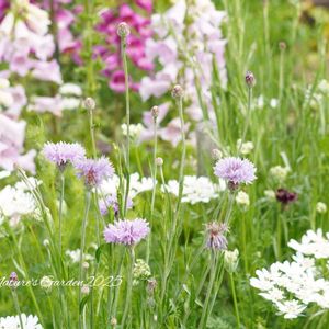 ①3月から咲いていて、今年5回目の満開を迎えたヘリオフィラ ようやくライスフラワー&ローダンセマムがコラボしました✨ ②③ディアスシア 3年目と4年目の株になります。 我が家では一年中咲いてます ④2年目のコリダリス ポルセランブルーはまた違った、蛍光水色🩵