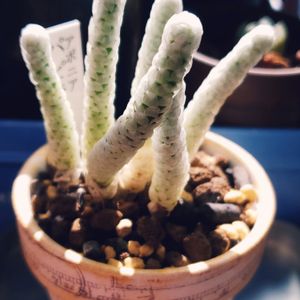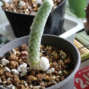 キモカワの白蛇さん 園芸店の半額コーナーから お持ち帰り ヘビみたいや…恐い((( ;゚Д゚))) …でも 気になる子ってことでうちの子になりました🌱 太陽の方向にくねくね動きます☀ こんな見た目でスベリヒユ科