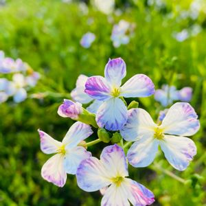 こんばんは⭐️ 帰り道の小川沿い。 白と、うす紫の可愛いお花がいっぱい咲いてて花畑に💠 とってもキレイ😊💕 これ、ハマダイコンでしょうか?🤔