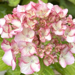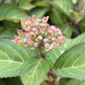 紫陽花 君の名は 紫陽花の花の名前って独特ですね(*^^*) 縁がピンクの花が咲きました😊 咲き始めなのでグリーンががっています😊 この色の状態がベストかも💦