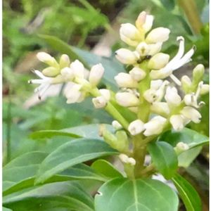 フッキソウ(富貴草科名) ツゲ科フッキソウ属 富貴草の花が 咲き始めていました。 カタツムリの目のような雄蕊が見えます 早速 アリがお出まし。 雌しべは まだ準備中のようでした。 確認は 宿題です。 高輪プリンスH 庭 3月23日 桜🌸を見に行ってきました。 メモ 濃い緑葉が茂る様子が、繁栄を祝う意味を表しているということで、「富貴草」「吉事草」など縁起のよい名前がつけられています。 春に白い花が穂になって咲き、穂の下の部分に雌花、上の部分に雄花がつきます。 雄花の4本の白い雄しべが大きく目立ちます。@みんなの趣味の園芸より