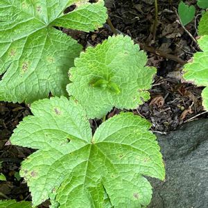 みなさんの投稿で知ったレンゲショウマの花が見たくて、蕾をチェックしてる場所で、ヤブレガサの花が咲いていました! もちろん、はじめまして🤗 レンゲショウマはまだ蕾😚
