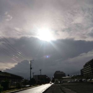 台風接近中、太陽☀️が顔を出しました。 🌈を一瞬出してくれました。