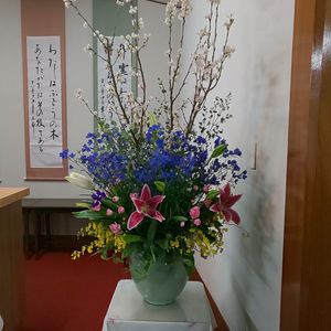 お正月や卒業式、結婚式などのハレの日に飾られるお花「啓翁桜(ケイオウザクラ)」です。🌸😊😄👌 支那桜桃(シナオウトウ)と彼岸桜(ヒガンザクラ)を交配してつくられた寒緋桜の一種で、12月中旬から3月にかけて満開になります。🌞✌️