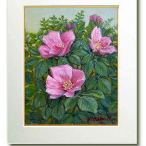 ハマナス(油絵)♥️ 今日のお花❤️ 七年前、家族で北海道へ旅行した際、余市で見つけました。帰宅後、油絵にしてみました。😅