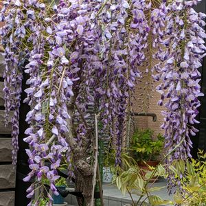 藤の花💜 ご近所さんシリーズ こちらもかなり剪定されて葉っぱなしの、花房だけ。\(^o^)/