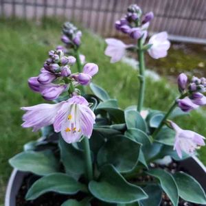去年、京成バラ園で買ったギボウシ🌱 ブルーマウスイヤー☺️ 前から欲しくて探してたのです。 冬を越し、春に芽吹くと4本花茎が伸び それぞれ開花しました。 南側に置いていて、うっかり葉焼けして ちょっと残念な姿な部分もありますが 全体的には元気です。 当分北側で過ごしてもらおうと思います🌱