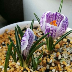 クロッカス 2年目。 咲いた\(´ω` )/ 去年は咲いた翌日に雨が降って終った。今年は屋根の下だし、雨も降らないから楽しめそう♪ てか、増えてる♡