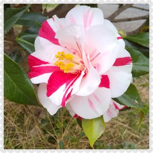 素敵すぎる😍 1本の木に、赤の椿とこの椿の2種類のお花が咲いていました 雨が降る前に撮れてよかった〜😊