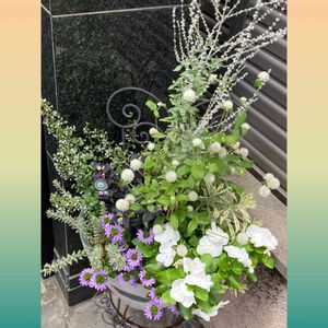 通り道のお店の花壇で。🌿 今日、梅雨明けして、暑さが厳しくなりました。爽やかなお花に、ほっとしました、☺️