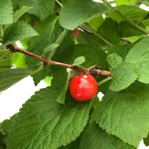 通り道にかわいい、赤い実。🍒 ユスラウメでしょうか? 美味しそう🥰❣️