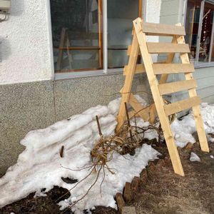 メインガーデン。 ようやくほぼ雪がとけました。 駐車場側の新設ガーデンにはまだ雪がありますが、そっちはゆっくりやっていこう。 あんまり早くなくなったら草生える。 最後のバラをなんとか雪から掘り起こした。生存確認🌹。 でもバラはけっこう折れていた😭 のでこの機会に思い切って剪定してみた。 新しいバラはまだ細いので安泰。 ここのところの暖かさでバラの新芽がぐんぐん成長。 楽しみだなー。