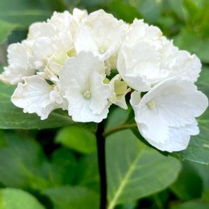 アジサイ「ゼブラ」です🦓 はっきり写っていませんが、茎が黒く花が白いドイツ生まれの園芸品種です🇩🇪🌸🌼