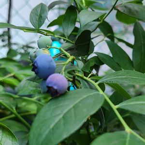 おはようございます。 ブルーベリー、 大粒の実を、収穫しました。 10号鉢に2苗 ヒトミとジョージアジェム。 どちらかわからないけど、サザンハイブッシュ系のブルーベリーです。 11月に、13号鉢に植え替えます。