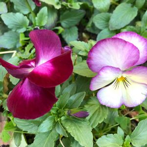 よく咲くスミレ🌸 同じ苗から、二色ので花が咲いてる〜🌸