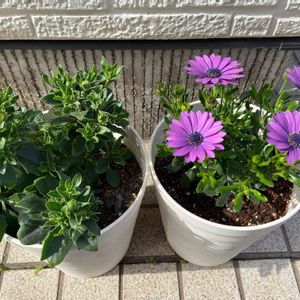 🌼オステオスペルマム🌼 右→先日お迎えしました🥰 左→昨秋に見切り品で見つけて連れ帰ったのですが蕾がついてきました😆♪ どんな色が咲くのか楽しみです😄
