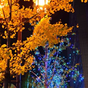 まったりtime☕ 昼は紅葉の銀杏並木☀ 夜は光のイルミネーション✴ たまには、いいよね😉仕事帰り🎵 観葉植物のライトアップも素敵でした✴✴✴