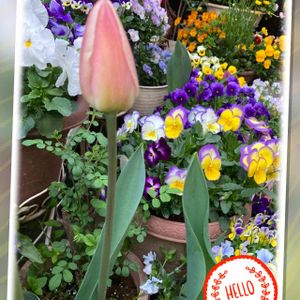 おはようございます 暖かくなってきてパンジービオラさん モリモリで華やかですね♥️ チューリップ🌷 昨年植え付けも少し遅れてしまったので やっと花芽が伸びてきました💓 チューリップ🌷が咲き始めたら もっと華やか💓 癒されますね💕 今日も穏やかな一日でありますように♥️