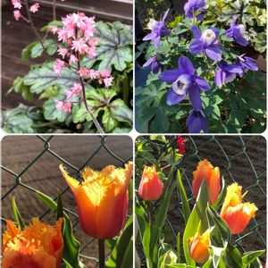 やっと咲いた我が家のチューリップ🌷 オレンジ色🧡 可愛い😍 オダマキとヒューケラも♥️ 次から次へと色んな花が咲いてきますね🌸