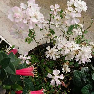 🏷️月曜日にはバラを🎵 参加します😉 雪姫🎵 少しずつですが🎵咲いてきます😉 とってもちっちゃいの🤗