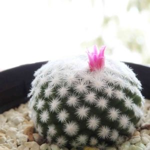 マミラリア 雪姫✨ 雪の結晶のような真っ白な刺❄️ 密集した刺の中からどうにか開花しました💠