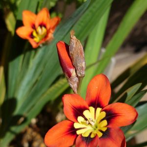秋植え球根 スパラキシス オレンジ色も 咲きました👏