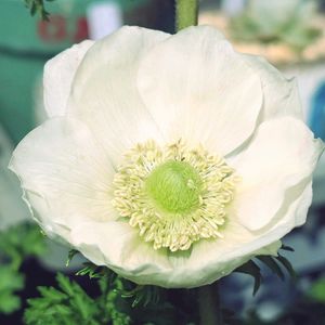 秋植え球根 4色目 アネモネの白色も咲きました。