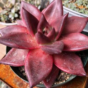 エケベリア レッドエボニー おはようございます😊 早く寝すぎてこんな時間に目か覚めてしまいました💦 どっしりガッチリの我が家のレッドエボニー。昼と夜の寒暖の差は充分あると思うのに、まだこんな色😨