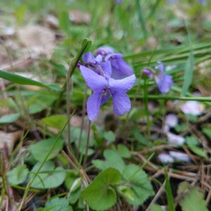 今頃ですが、花友さんと投稿の約束をしていたのに忘れていたので、思い出し投稿です♪ 珍しい、距が2つの多距型スミレ。 ケタチツボスミレ(毛立坪菫) スミレ科 スミレ属 多年草 タチツボスミレで毛が生えているタイプです。 日本全土に分布。 道端、山地に生育。 花期4〜5月 4月10日撮影 天狗山