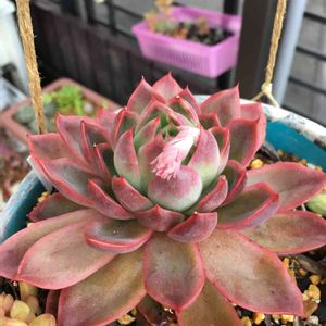 こちらも、acoさんのケーキ缶 パステル調の苗を整え、セダムを足して 寄せ直しました💕 リボンもリニューアル🎀