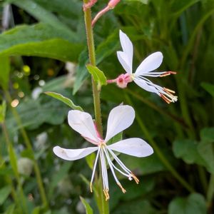 おはようございます☀ 今年ガウラを初めて花壇に植えました 今朝見たら咲き始めています、下から咲いていくんですね☺️💓