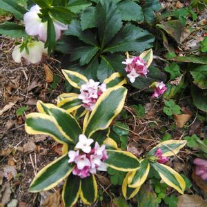 斑入り沈丁花 前島(フイリジンチョウゲ マエシマ) 元気に咲いてましたー😍💓💓 斑入りでもとっても良い香りー😊💕💕 🏷️日曜ビタミンカラー 葉っぱだけ😁