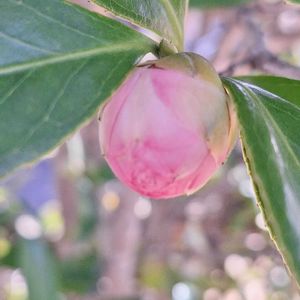 晴れてきた🌤️ 庭の椿…ようやく蕾が膨らんだ🤗 コロンコロン…チュッパチャプスいっぱい😁