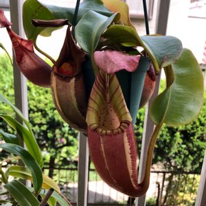 ネペンテス・ビーチ・バリオ(N. veitchii Bario)。うひょー、たまんねえ🥰🥰 今日は秋のらん展に行ってきたのですが、ついに買っちゃいました、ビーチ・バリオ☺️ 私が持ってるネペンテスの中でぶっち切りに高いです笑 veitchiiの交配種はいくつか持ってますが、地味にネペンテスの原種を育てるのは初めてですね veitchiiは着生種なので吊るさない方が良いと思いますが、鉢が小さく袋がデカく平置きが安定しなかったので、とりあえず吊るしておきました veitchiiを買ったのはいつもヤフオクでお世話になってるHIPSさんです(たぶん持ってるネペンテス・サラセニアの8割くらいがHIPSさんのです笑) 他は海外の業者さんが来ていたり、PLANT CLUBさんのクソデカいアデニウムを見たりと楽しんできました☺️