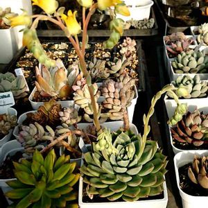 鶴仙園・池袋西武店にて今年の初多肉狩り😊 ☆メモ☆ ロビンはラウイ×グロブローサまたはその逆、子株ができやすい ノバジンは花和神とノバヒネリアナの交配種 ローラはティッピーとリラシナの交配種 pont rosaは、タナベフラワーさんでポントラサで売られてるのと同じだと思う。