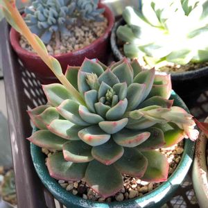 おはようございます😃 花芽付きエケベリア4人衆です。 これからニョキニョキ伸びて、どんな お花を見せてくれるのか楽しみです🎶