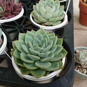 購入当初はしわしわ状態だったが、水やりをしたらすぐに給水してくれ、ふっくらとパツパツになってくれた。少し成長し大きくなってくれたように思える。 そんな姿を疲れたとき観ているとなぜか落ち着く癒される。 エッジがうっすらとピンク色になるところが良い。